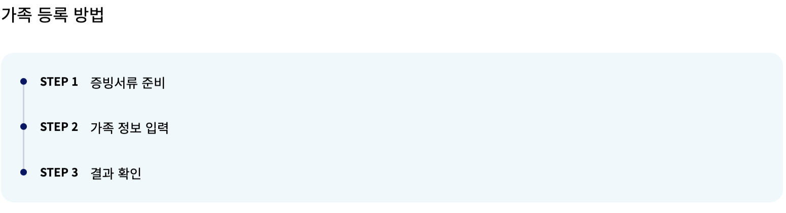 1년 이내에 발급한 신천인과 등록할 가족의 가족관계 및 생년월일이 명시된 법적 서류가 준비되어야 하며, 열람용 문서, 미리 보기 문서는 인정되지 않습니다.