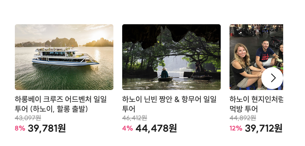 하롱베이 크루즈 투어부터 닌빈 짱안, 푸드투어까지 인기투어 상품 최대 1만원 즉시 할인 프로모션을 진행중입니다.