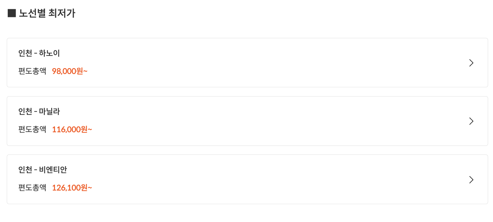 대산 노선 : 인천-하노이/마닐라/비엔티안 편도, 왕복 구매시 사용 가능
