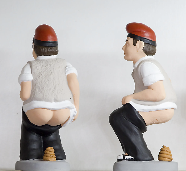 까가네르는 카탈루냐 지방의 전통적인 크리스마스 장식 인형으로 검은 바지에 붉은 허리띠를 두르고 카탈루냐 전통 베레모를 쓴 농부가 배설하는 모양의 피규어 입니다. 까가네르가 배설하는 모습은 거름이 되어 토양을 비옥하게 한다는 상징으로 풍요와 번영을 기원하는 의미르 담고 있습니다.