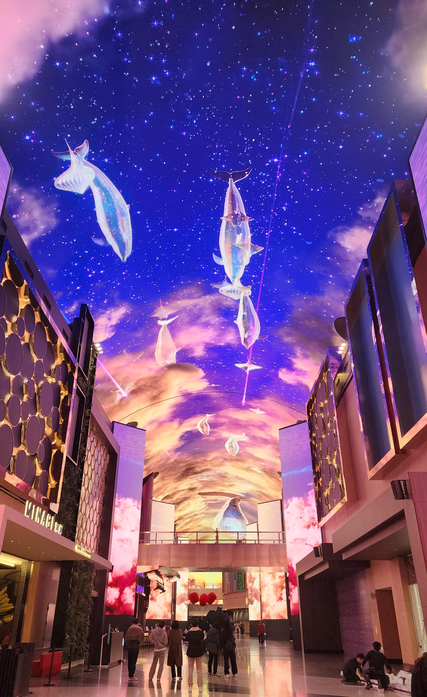 길이 150m에 달하는 천장과 높은 벽면을 초고화질 LED로 가득 채워져 있습니다. 울려 퍼지는 사운드와 함께 초현실적인 장면을 현실감 있게 구현한 몰입형 디지털 엔터테인먼트 거리이며 실내 공간에서 푸른 풀잎 사이를 거닐기도 하고, 고래가 헤엄치고 있는 바닷속을 경험하실 수 있습니다.