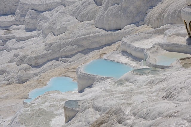 이집트의 여왕 클레오파트라도 반했다는 석회 온천수로 유명한 관광지 입니다. 파묵칼레의 파묵은 목화를 칼레는 성을 뜻하는 말로 파묵칼레는 말 그대로 목화의성 이라는 명칭입니다. 거대한 석회암이 마치 계단처럼 층층이 형성돼 하얀색의 목화로 이루어진 성과 같은 웅장한 자태를 자랑합니다.