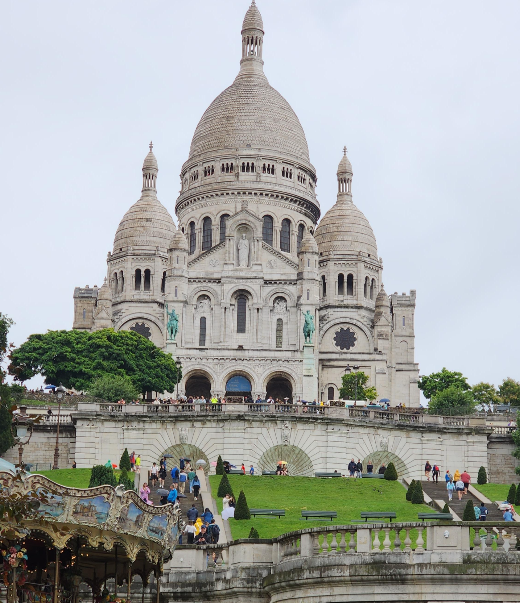 1919년에 완공된 로마네스크 양식의 대성당입니다. 몽마르트 언덕 위에 위치한 대성당으로 성당 앞에 잔 다르크의 동상이 있고 하얀 돔이 우아한 자태로 솟아 있는 모습이 매우 아릅답습니다. 흰색 대리석으로 건축된 대성당의 높이는 83미터이며 내부는 화려한 스테인드글라스와 모자이크로 장식되어 있습니다.