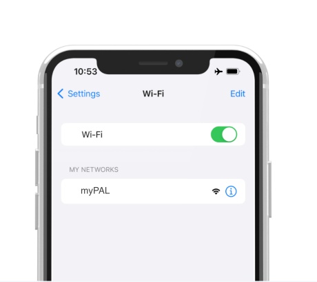 - 와이파이 설정에 들어가 'myPAL' 네트워크에 연결합니다.