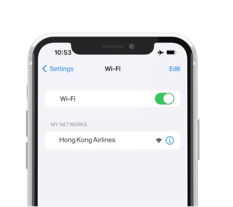 - 와이파이 설정에 들어가 'Hong Kong Airlines' 네트워크에 연결합니다.