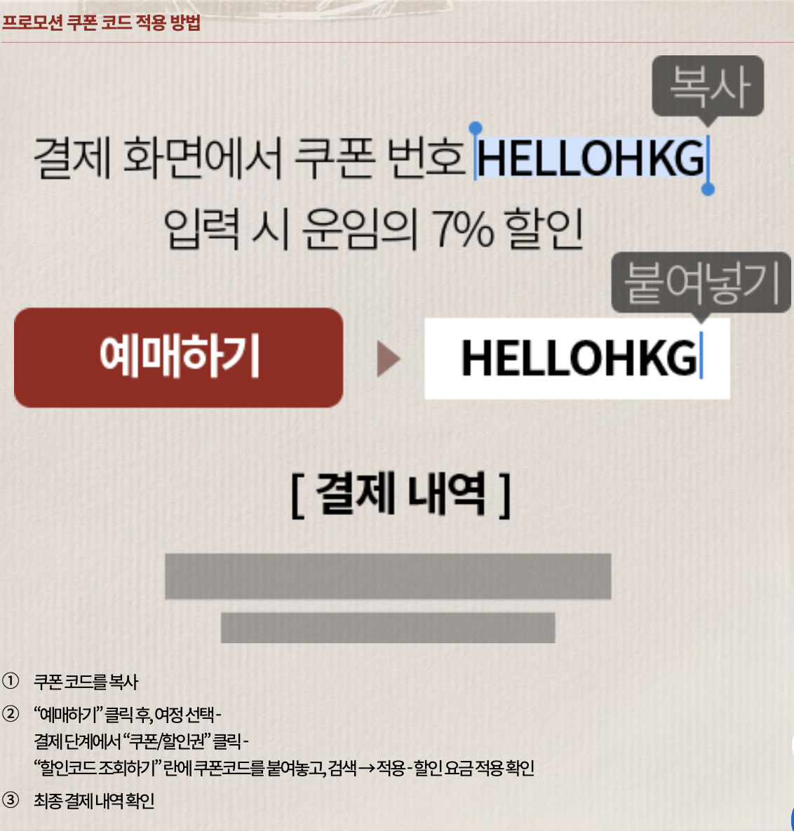• 예매 시 환불 및 예약 변경에 관련된 규정을 반드시 확인하시기 바랍니다.