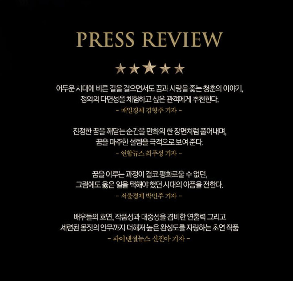 - 공연시간정보 : 화,수,목,금 7시 30분│토,일 2시, 7시│월 공연 없음