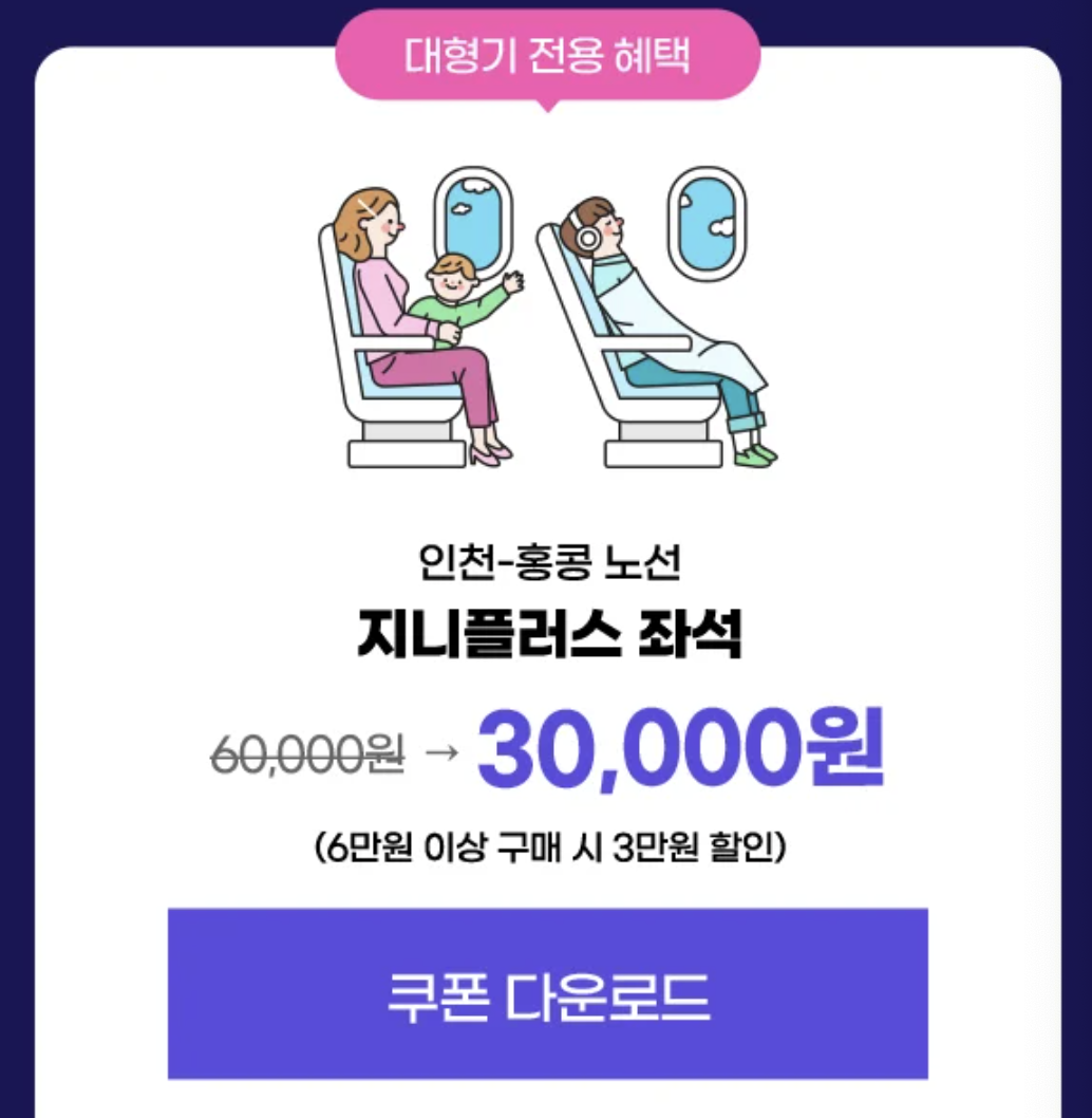 - 대상 노선 : 인천 출발 홍콩 노선 (왕복 한정)
