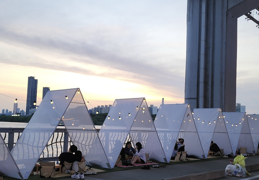한강의 선셋을 바라보며 힐링할수 있는 프라이빗 피크닉 스페이스 입니다. 4인용 텐트안에서 멋진 한강뷰를 즐기실 수 있으며 대여 금액이 무료이고 선착순 예약으로 빠른 예약마감이 진행되므로 서둘러 사전예약 진행하시길 바랍니다.