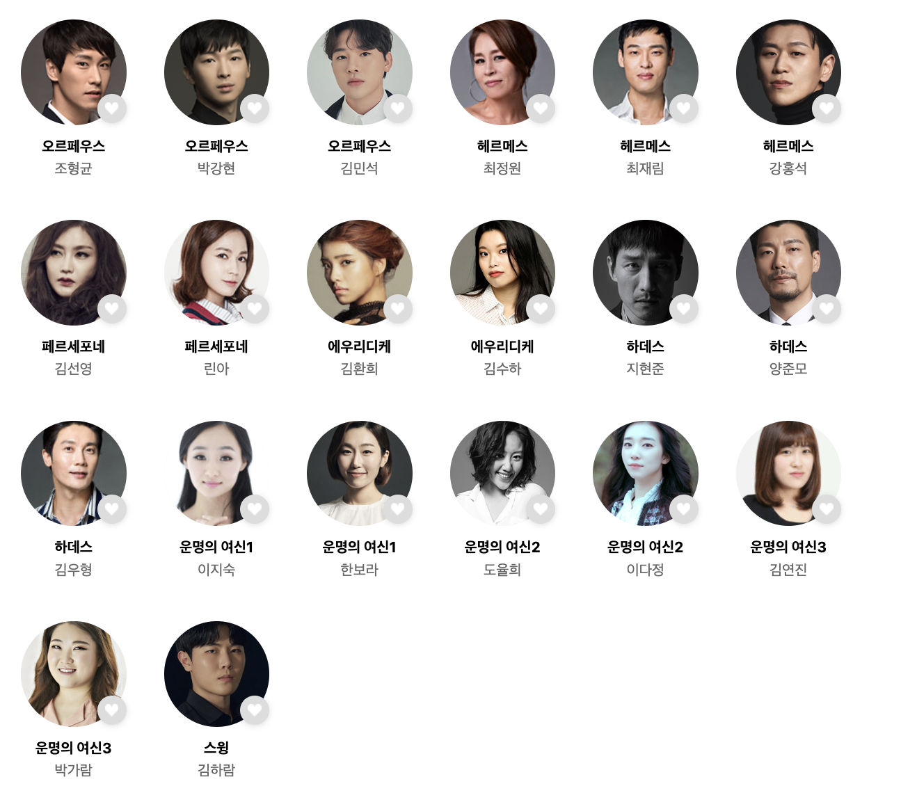 날짜와 회차별로 뮤지컬 배우가 다릅니다. 배우가 다른 만큼 같은 공연이지만 배우에 따라 다른 느낌의 뮤지컬 관람이 가능하십니다. 아래 링크로 들어가시면 공연일 또는 선호하는 배우별 캐스팅 일정을 쉽게 조회할 수 있습니다.