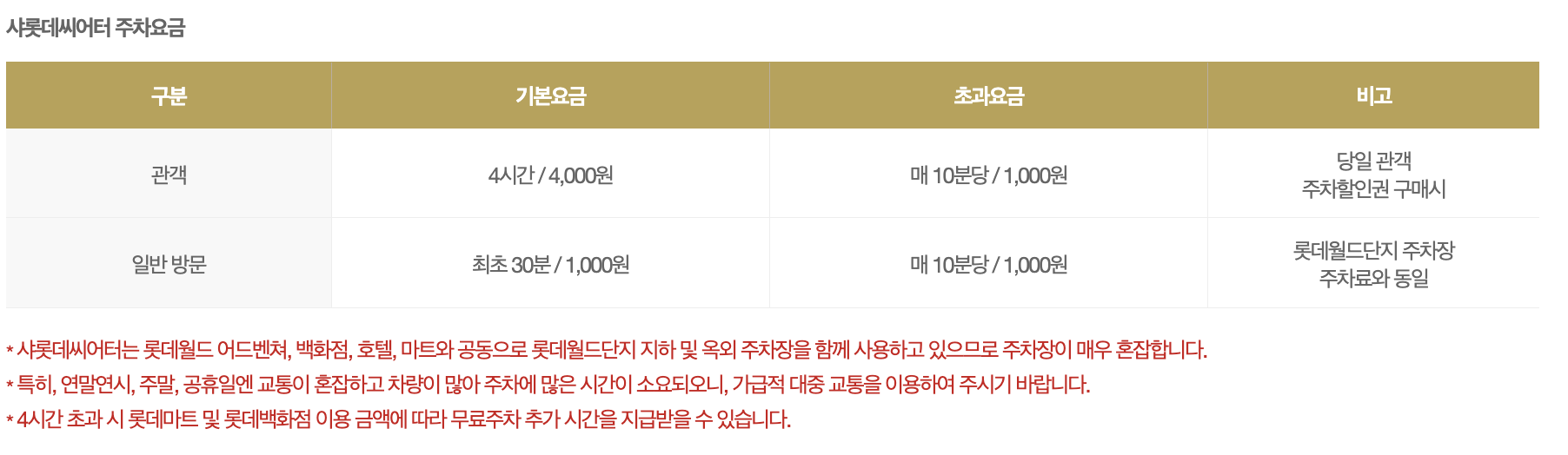샤롯데씨어터 주차 안내