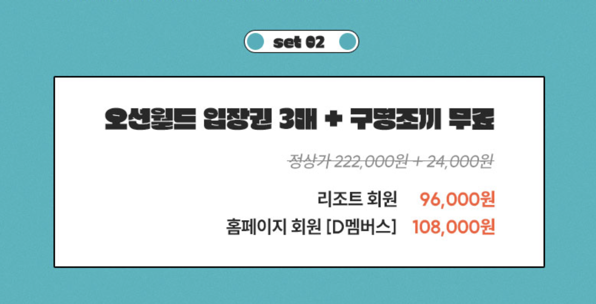 단 12일동안 진행하는 이번 프로모션은 오션월드 입장권을 2매, 3매, 4매로 묶어 파격 할인가에 판매하는 세트권 프로모션입니다. 구매고객에게 1인 8천원 상당의 구명조끼 무료로 제공하고 있으며, 분할 사용, 타인양도 가능한 프로모션으로 부담 없는 가격으로 가족, 지인과 함께 무더위를 식히며 즐기운 추억을 쌓으실수 있습니다.