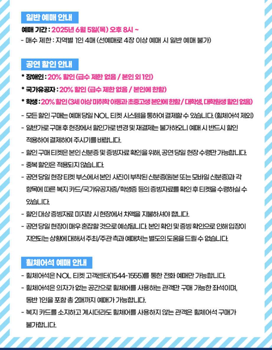 - 예매 시작일: 6월 05일(목) 오후 8시 오픈