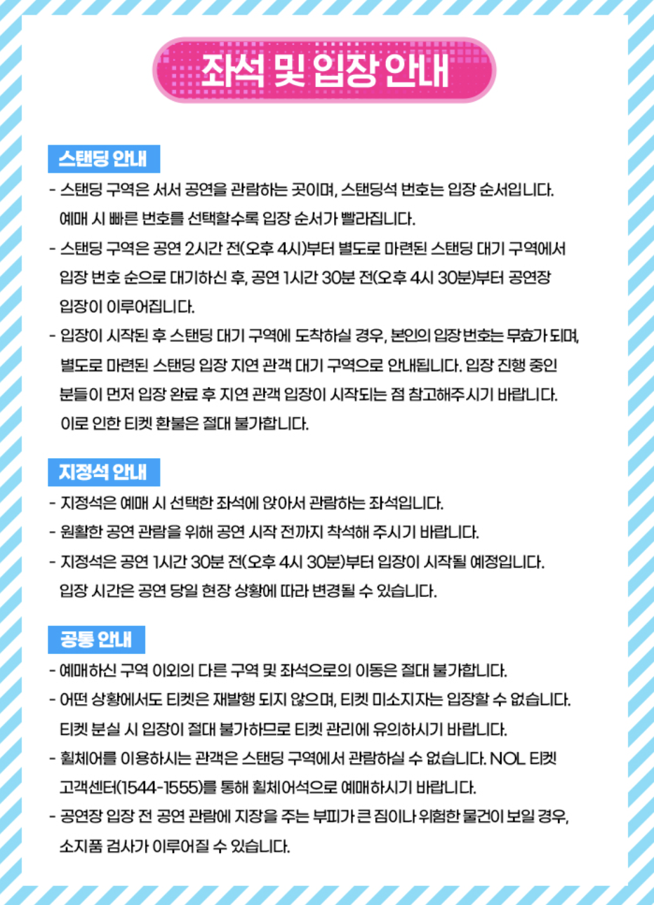 | 휴대용 선풍기 | 대기 줄에서 대기할 때 유용 (공연 중엔 필요 없음) |
