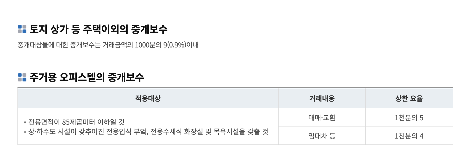 부동산 중개보수 적용 기준