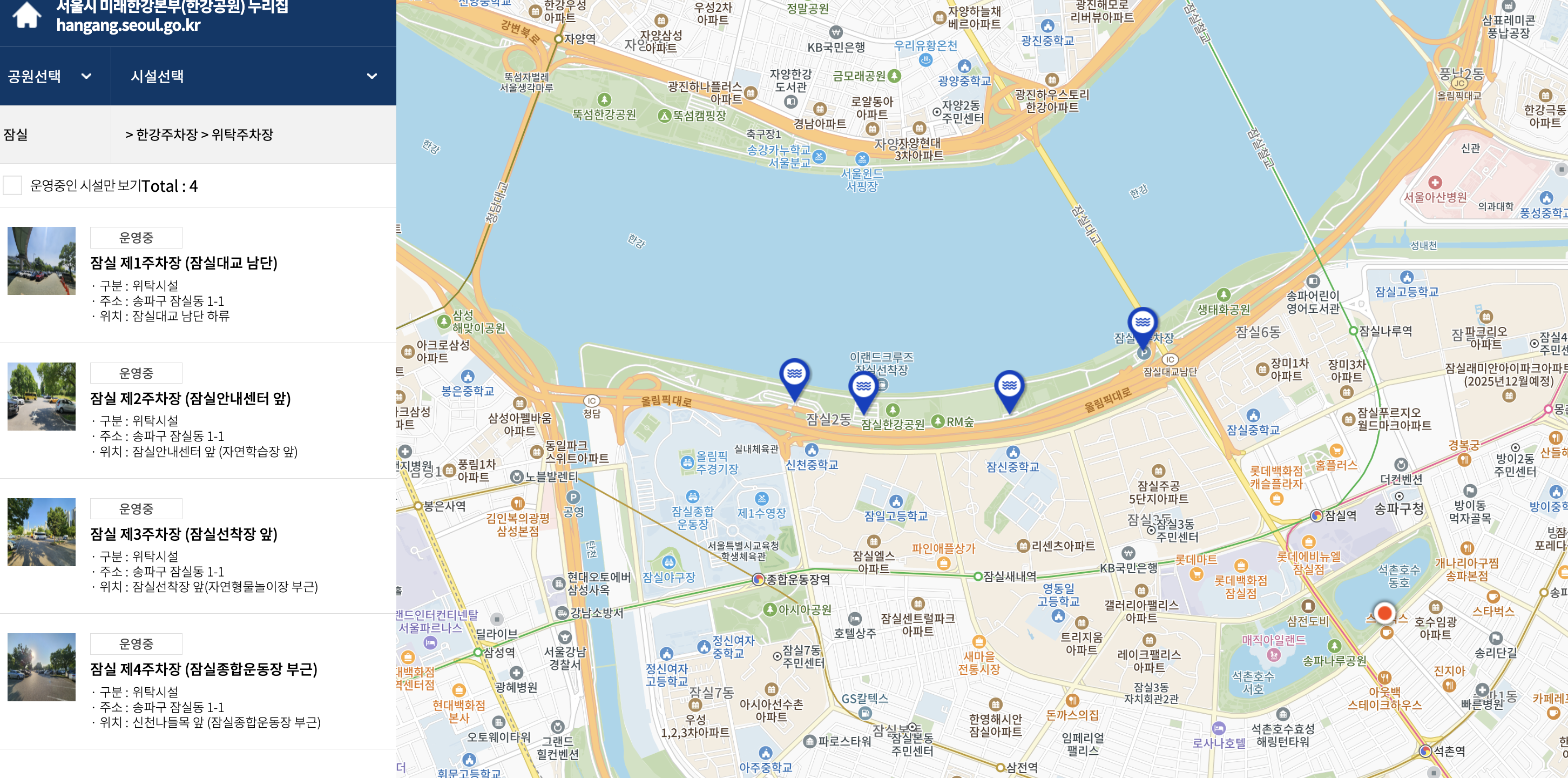잠실 한강공원 주차장 안내