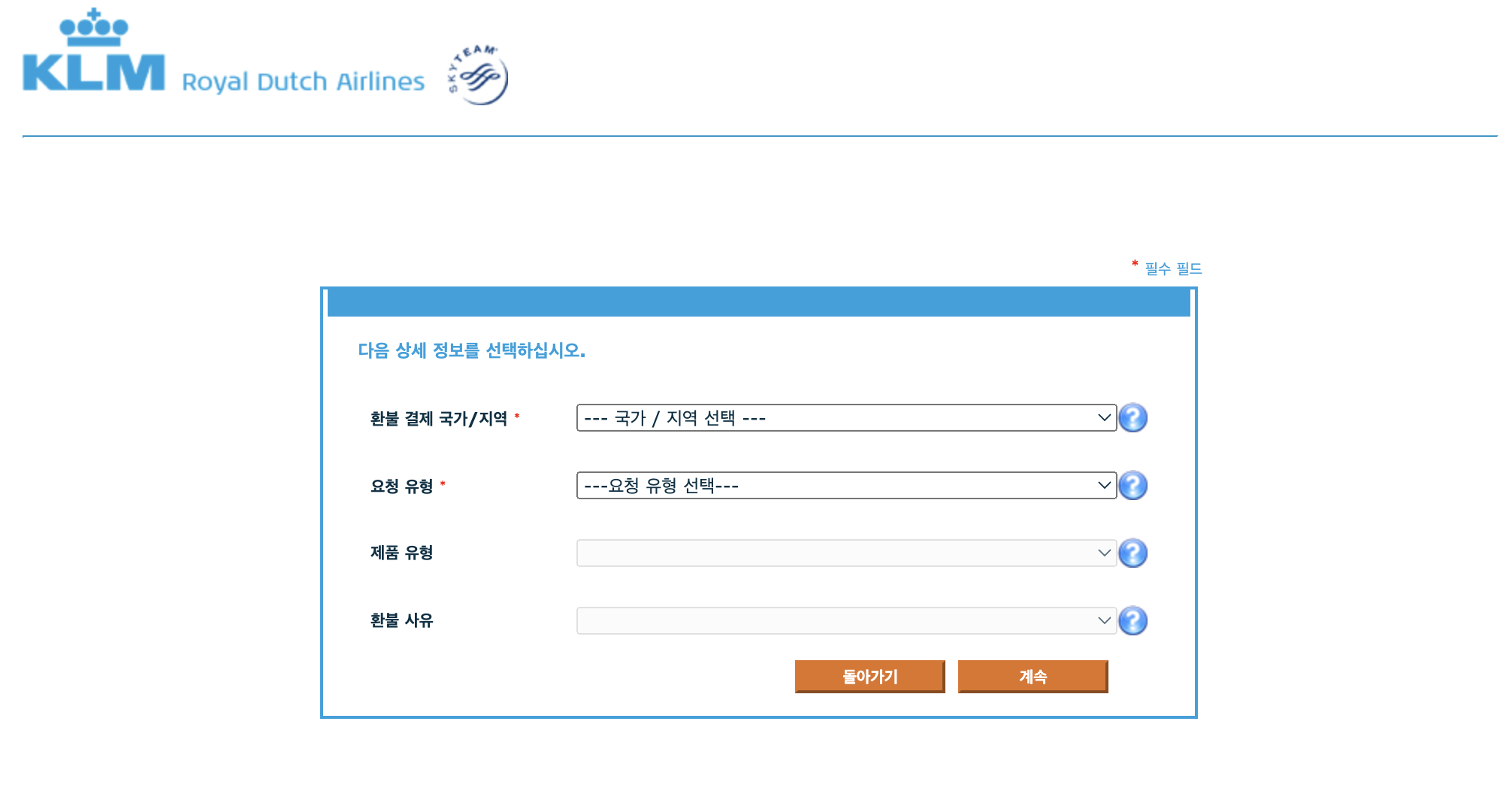 기내 와이파이 이요권 구매 후 문제가 발생한 경우 구매한 요금제 환불 받으실 수 있습니다. 환불 요청을 원하시느 분들은 아래 링크로 접속하여 환불 결제 국가/지역, 요청 유형등 간단한 정보 입력후 환불이 가능하십니다.